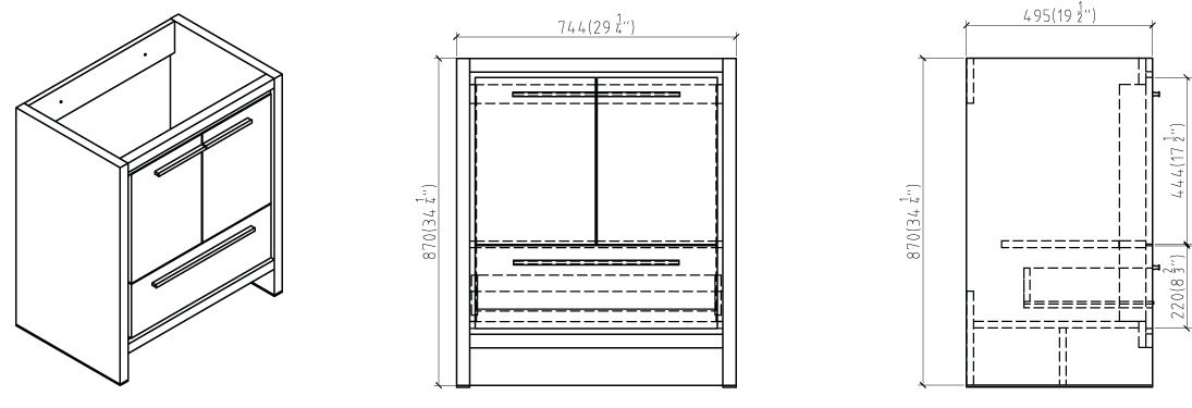 | 750mm x 500mm x 175mm | 744mm x 495mm x 870mm | 750mm x 150mm x 650mm |